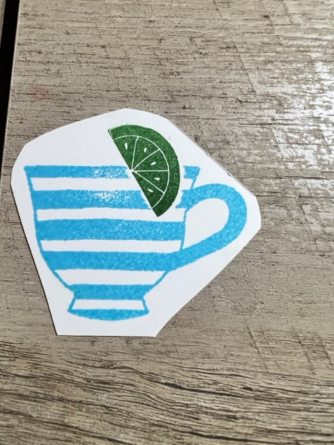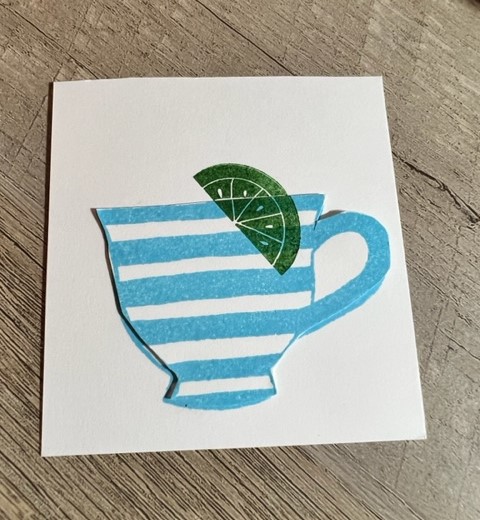With masking, you are working from the front to the back. If you only want part of a stamped image to show, you will need to make a mask of the other image. In the image below, you only want the top part of the lemon slice to show, as you want it to appear to be inside the cup. This is what it looks like before masking: