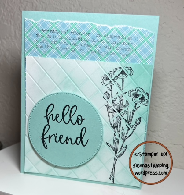 You can then finish off your card! I used Pool Party cardstock, the Quiet Meadow stamp set, and the Biggest Wish set for the sentiment.