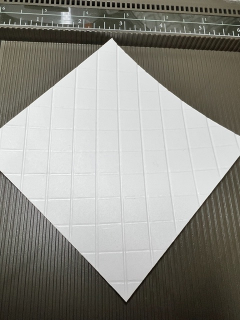 Now if you turn it you can see the diagonal tiles! At this point I used a blending brush and applied a light color of pool party ink to the scored cardstock. (Just swipe your blending brush over your inkpad, swipe it on a piece of scrap paper to remove the excess, and move in circular motions on your cardstock.)