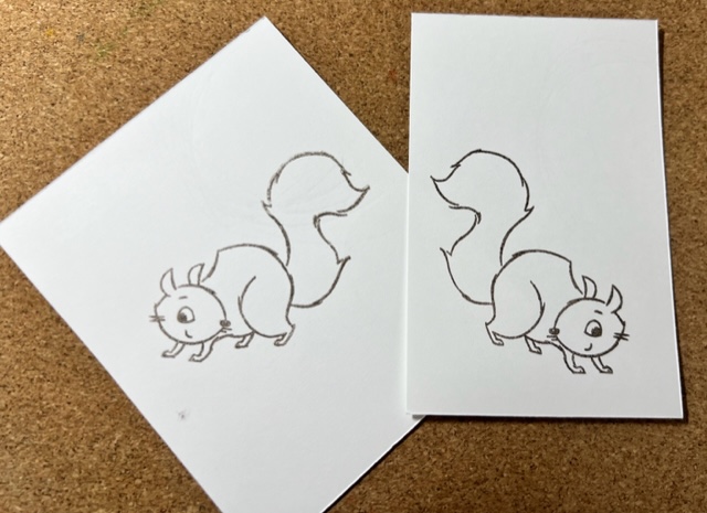 - The end result is that you get a mirror image. The squirrel on the left is the mirror image of the squirrel on the right. It can take some practice to get an image you are satisfied with. This is a great way to use up your cardstock scraps as well; just die cut or fussy cut out the images to use on your cards.