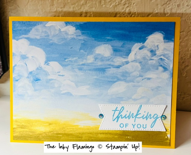 I also Crushed Curry card stock for this card base, although I think Balmy Blue would have worked nicely as well. If you’re looking to make a quick card, let the DSP do the work for you, and just add a greeting to the front!