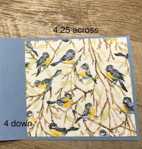 5. Cut your 6 x 6 patterned paper down to 4.25 x 4. Center this on your card front and fasten down.