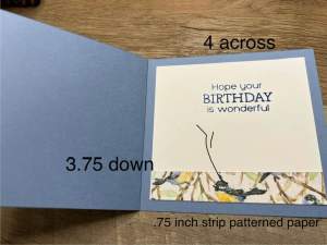 - You can use ribbon on the spine instead of the small piece of patterned paper. I recommend 5/8″ or 3/4″ ribbon. In my next fun fold post, I will be doing a variation of this card which uses ribbon on the spine, and I will post a link here so you can check it out.