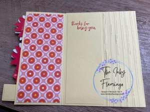 - Open your card, and attach the second piece of patterned paper to the back (left side)