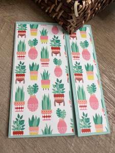 - Take one of your 2.5 x 5.25 pieces of patterned paper and adhere to the front left panel.