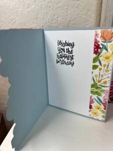 I felt the edge was a little basic, so I decided to dig out some border dies and make it pretty! You can never go wrong with border dies; it really gives your cards that extra dimension. Here’s a side view of the finished card so you can see the edge: